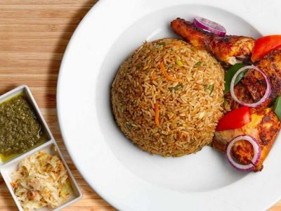 “GRILLED/FRIED CHICKEN WITH (JOLOF/PLAIN OR FRIED RICE”
