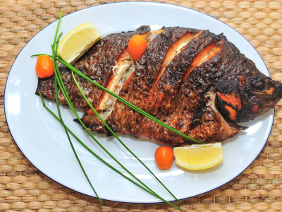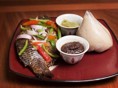 “GRILLED/FRIED TILAPIA WITH BANKU/AKPLE OR RICE”